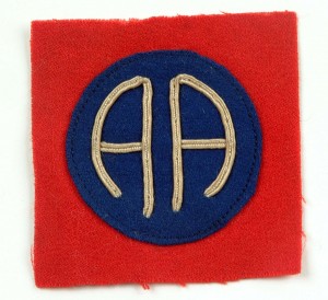 Thousands of people submitted names, but eventually, Mrs. Vivienne Goodwyn’s, “The All American Division” was selected on April 6, 1918. Vivienne felt like the Soldiers of the 82d represented the best attributes and values of America. To pay tribute to their nickname, 82d Soldiers began sewing the blue circle that was in the middle of their red square shoulder patch, with the double “AA” for “All American.” Originally, some thought the “AA” on the patch stood for “All Aboard”. Additionally, when the patch was first authorized, full gold patches were used for officers. Eventually, the patch was standardized with the red, white and blue that you can see on today’s patches.