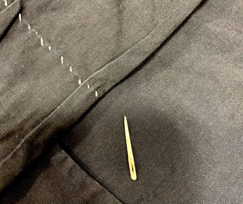 Fashioned from spider monkey bone, Schrump used this needle to repair clothing and other items.