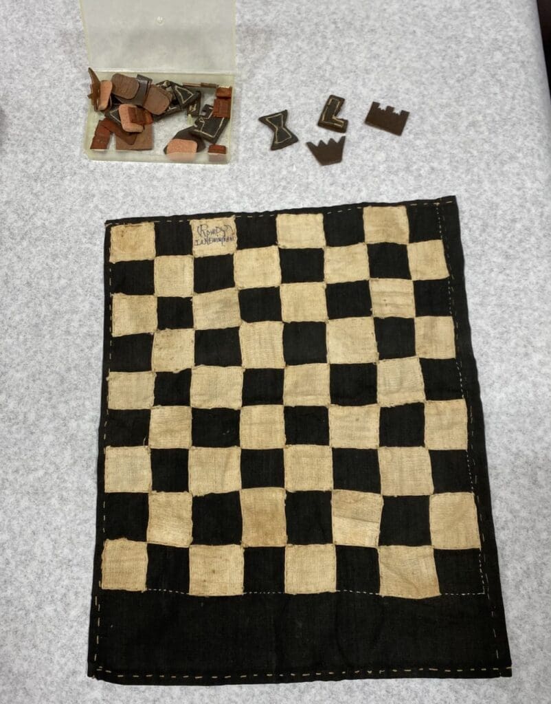 This handmade chess set made by Schrump provided prisoners with a source of entertainment.