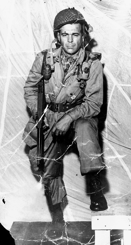 Mrs. Hiebert, whose husband, Samuel L. Hiebert, served as an Army chaplain during World War II, created the statue in an old parachute packing facility. Sergeant MajorJames Runyon was selected as the model for the statue, and posed for over four hours a day, twenty minutes at a time while wearing his own WWII uniform. The photograph below was taken of Runyon to aide in the construction of the statue as it was being developed.